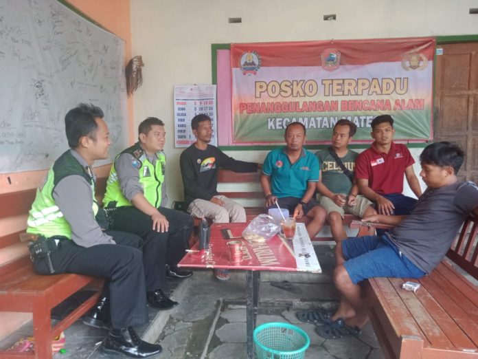 Polres Karanganyar – Anggota patroli Polsek Matesih Polres Karanganyar Polda Jawa Tengah melaksanakan patroli dan sambang ke Posko Terpadu Penanggulangan Bencana Alam yang berada di Sapta Tirta Desa Pablengan Kecamatan Matesih Kabupaten Karanganyar, Selasa (11/02) pukul 15.00 Wib.