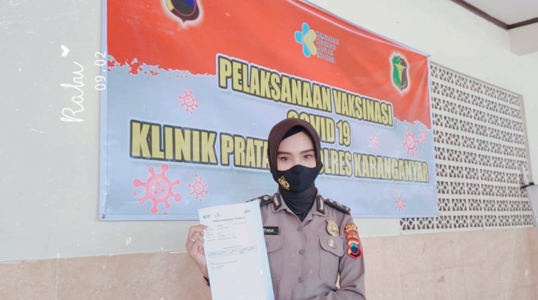 “Saya Briptu Sufiana Mayasari, anggota Polres Karanganyar. Hari ini saya baru saja selesai vaksin Covid-19. Dan saya baik-baik saja, yang saya rasakan hanya sedikit lapar padahal tadi sudah sarapan dan sedikit mengantuk selebihnya tidak merasakan apapun,” ujarnya melalui video yang dikirim Sub Bagian Humas Polres Karanganyar.