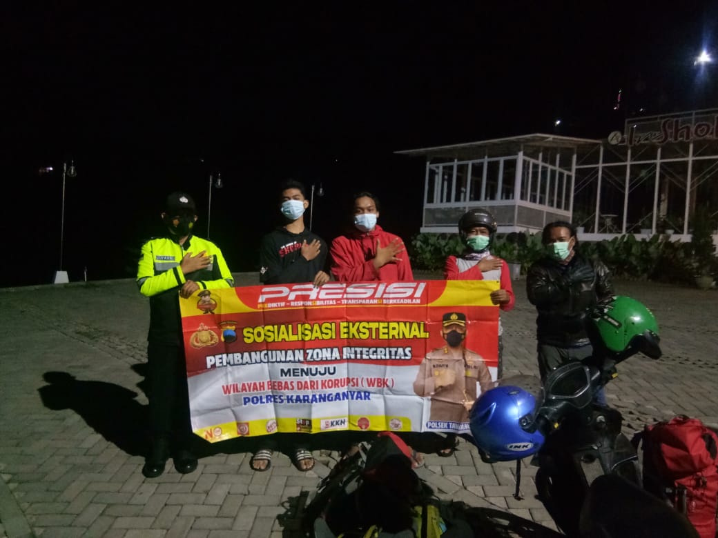 Bhabinkamtibmas Polsek Tawangmangu mensosialisasi kepada masyarakat di wilayah binaanya, Kapolres Karanganyar AKBP Muchamad Syafi Maulla melalui Kapolsek Tawangmangu AKP Ismugiyanto menyampaikan bahwa pembangunan Zona Integritas (ZI) ini, tidak lain untuk mencapai Wilayah Bebas Korupsi dan Wilayah Birokrasi Bersih, serta untuk memberikan pelayanan yang terbaik kepada masyarakat.