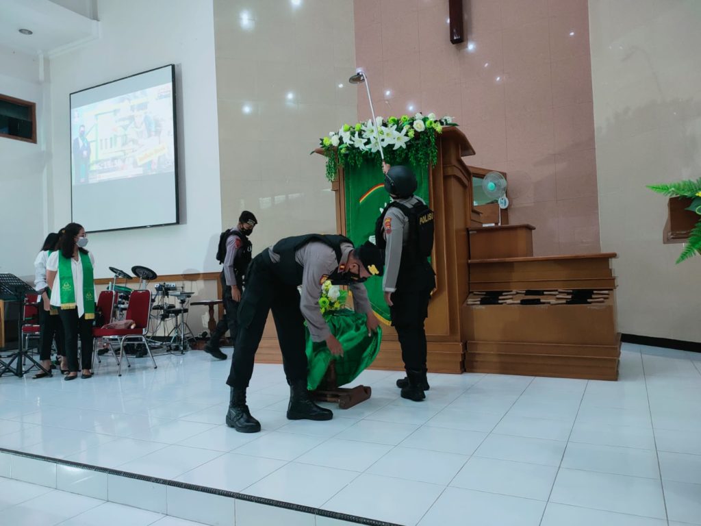 Menindaklanjuti hal tersebut, Sat Samapta Polres Karanganyar, dipimpin oleh Ipda Ngadimin melaksanakan pengamanan ibadah Minggu pagi di GKJ Klodran, Colomadu, Minggu (26/9) pagi.