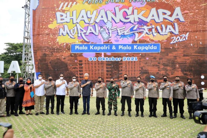SEMARANG – Masyarakat diberikan kebebasan luas untuk menyampaikan aspirasi atau kritikan kepada institusi Polri, namun tetap dalam koridor serta didukung data. Media untuk menyampaikan pesan kritikan aspirasi bisa apa saja termasuk melalui gambar mural. Kapolda Jateng Irjen Pol Ahmad Luthfi mengungkapkan hal tersebut saat menghadiri pembukaan Bhayangkara Mural Festival di halaman Mapolda yang juga dihadiri Gubernur Jateng, para pejabat utama serta sejumlah pekerja media, Sabtu (30/10) pagi.