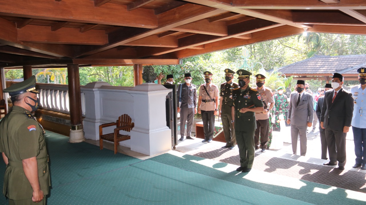 Polres Karanganyar – Kapolres Karanganyar AKBP Muchammad Syafi Maula, S.I.K, M.H, beserta Forkopimda mengikuti rombongan ziarah dalam rangka HUT ke 76 TNI tahun 2021 di Makam Jendral Besar Soeharto, Astana Giribangun. Senin (04/10) pagi.