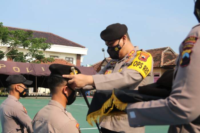 Polres Karanganyar – Kepala Kepolisian Resor Karanganyar AKBP MUCHAMMAD SYAFI’ MAULLA, S.I.K., M.H., pimpin upacara pembaretan terhadap 9 personel bintara remaja baru.
