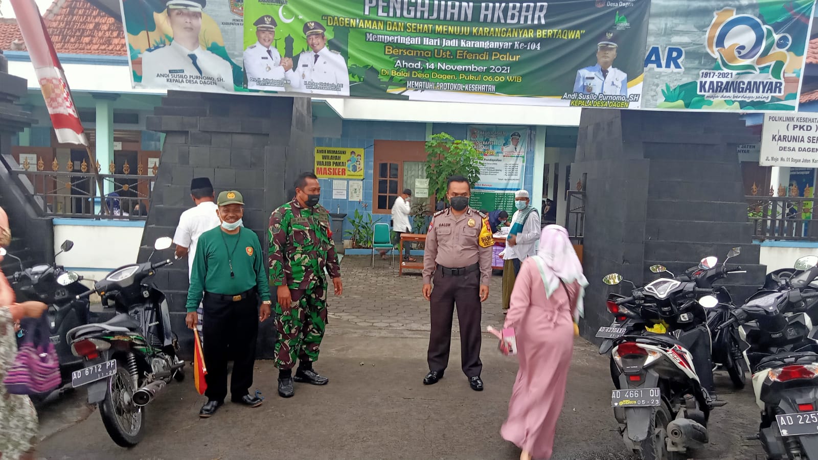Karanganyar – Polisi Hadir Di Masyarakat untuk menciptakan rasa aman, Anggota Polsek Jaten Polres Karanganyar melaksanakan pengamanan Pengajian Akbar Maulid Nabi dan peringatan Hari jadi Kabupaten Karanganyar ke 104 di Balai desa Dagen Kec. Jaten, Minggu (14/11/21) dimulai jam 06.00 – 08.00 Wib.