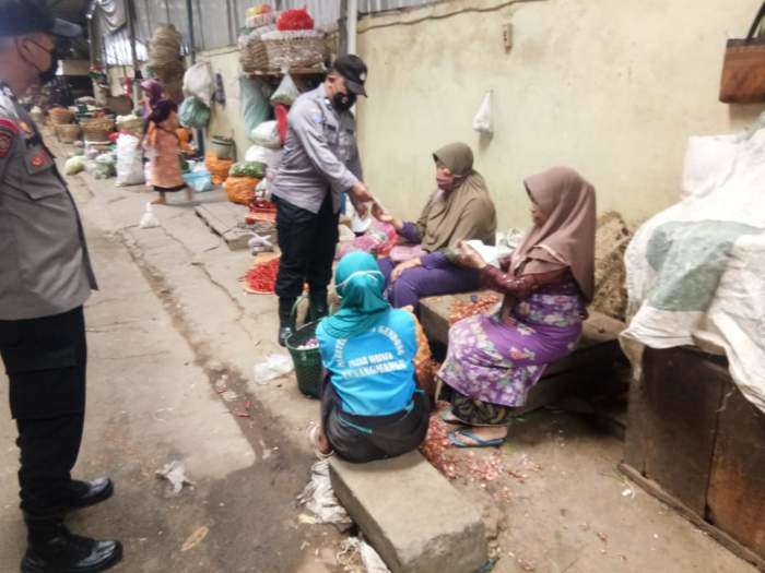 Beberapa lokasi di seputaran Pasar Tradisional Tawangmangu didatangi, termasuk para pedagang lapak di pasar tradisional, sejumlah anggota Polsek mengimbau warga untuk tetap disiplin menjalankan prokes 5M.