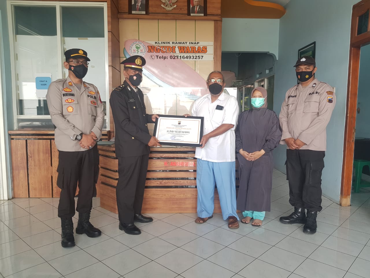Karanganyar – Dalam rangka memperingati Hari Pahlawan tahun 2021 Polsek Kerjo memberikan apresiasi kepada dua klinik di Kecamatan Kerjo yang telah ikut serta membantu pelaksanaan program vaksin pada hari Rabu (10/11/21).