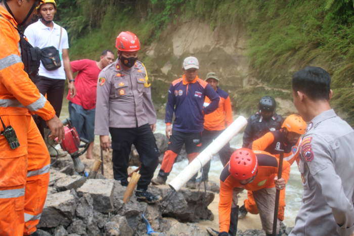 Tim SAR gabungan berhasil menemukan keberadaan tubuh pria 62 tahun itu sekitar pukul 15.00 WIB. Namun proses evakuasi tidak bisa segera dilakukan, karena tubuhnya masih tertimbun pasir dan batu.