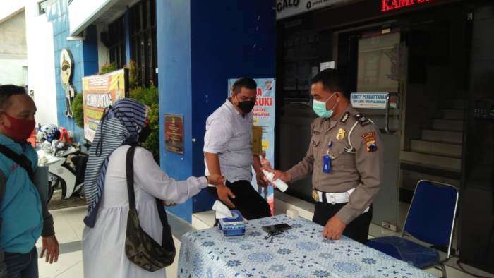 Penerapan protokol Kesehatan tersebut meliputi, pemeriksaan suhu tubuh, setiap pengunjung yang akan memasuki kantor pelayanan public di lingkungan polres Karanganyar wajib memakai masker dengan benar, mencuci tangan dengan sabun di air yang mengalir pada tempat yang telah disediakan. Pengunjung pun sebelum memasuki Gedung pelayanan wajib melakukan scan Barcode (QR) aplikasi peduli lindungi. Demikian juga di dalam Gedung, telah disediakan empat antrian dengan menerapkan physical distancing, seperti terlihat pada kursi antrian ditempel tanda silang merah. Saat berinteraksi dengan petugas pelayanan, terdapat sekat yang terbuat dari bahan akrilik dengan maksud mengurangi resiko penularan virus corona -19.
