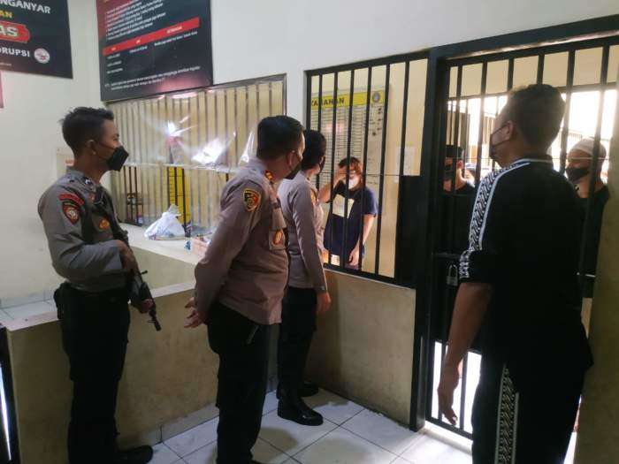 Polres Karanganyar – Piket perwira pengawas Polres Karanganyar, AKP Suwarsi, bersama personil jaga tahanan dan Sat Tahti melaksanakan pengecekan tahanan di Mako 2 Polres Karanganyar, Selasa (7/12) pagi.