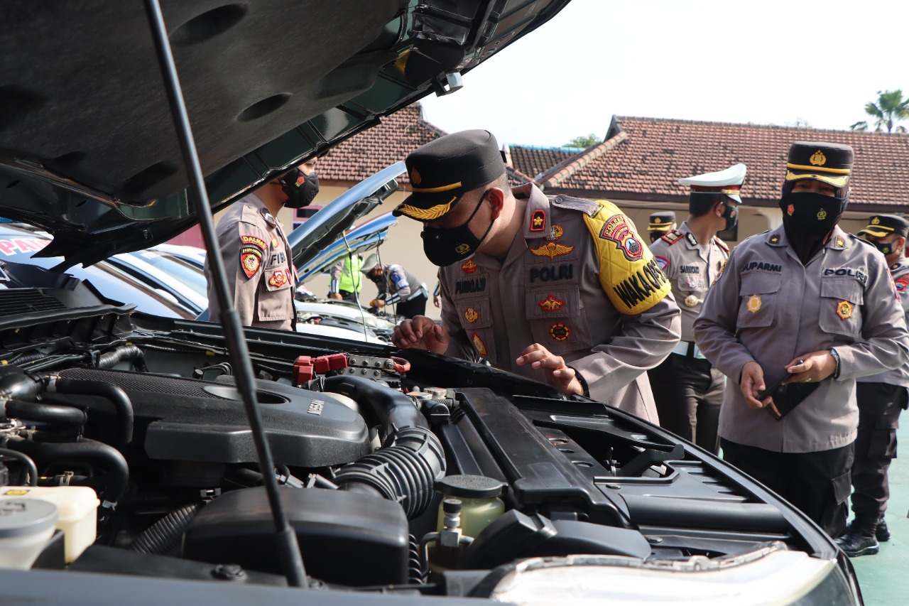 Usai gelar pasukan, Wakapolres bersama pejabat utama Polres Karanganyar mengecek secara langsung sarana dan prasarana pendukung Operasi Keselamatan Lalu Lintas Candi tahun 2022. Diantaranya adalah pengecekan kesiapan kendaraan dinas sepeda motor dan mobil agar optimal dalam mendukung tugas operasi.