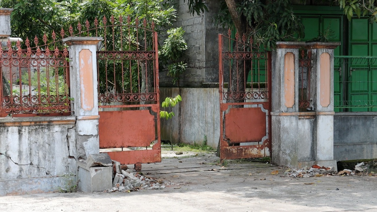 Akibat tumbukan mobil Mitsubishi Strada warna silver yang dikendarai Sunardi, sebagian tembok pagar rumah Sariman remuk. Benturan yang diperkirakan cukup keras itu, juga menjadikan pintu pagar miliknya lepas.