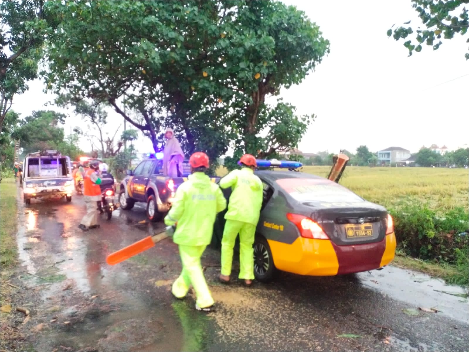 Polres Karanganyar – Satsamapta Polres Karanganyar terjunkan Tim SAR nya membantu melakukan evakuasi pembersihan jalan raya Tasikmadu – Jaten, akibat adanya pohon tumbang kearah jalan sehingga sempat mengganggu arus lalu – lintas.