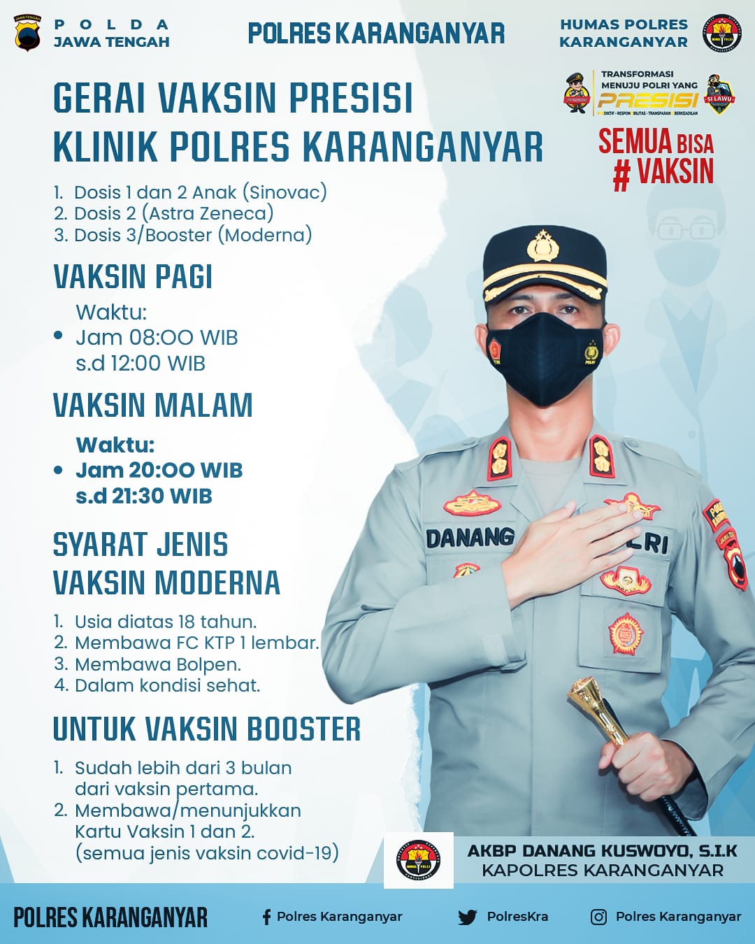Percepatan Vaksinasi, Polres Karanganyar Gelar Vaksin Pagi dan Malam