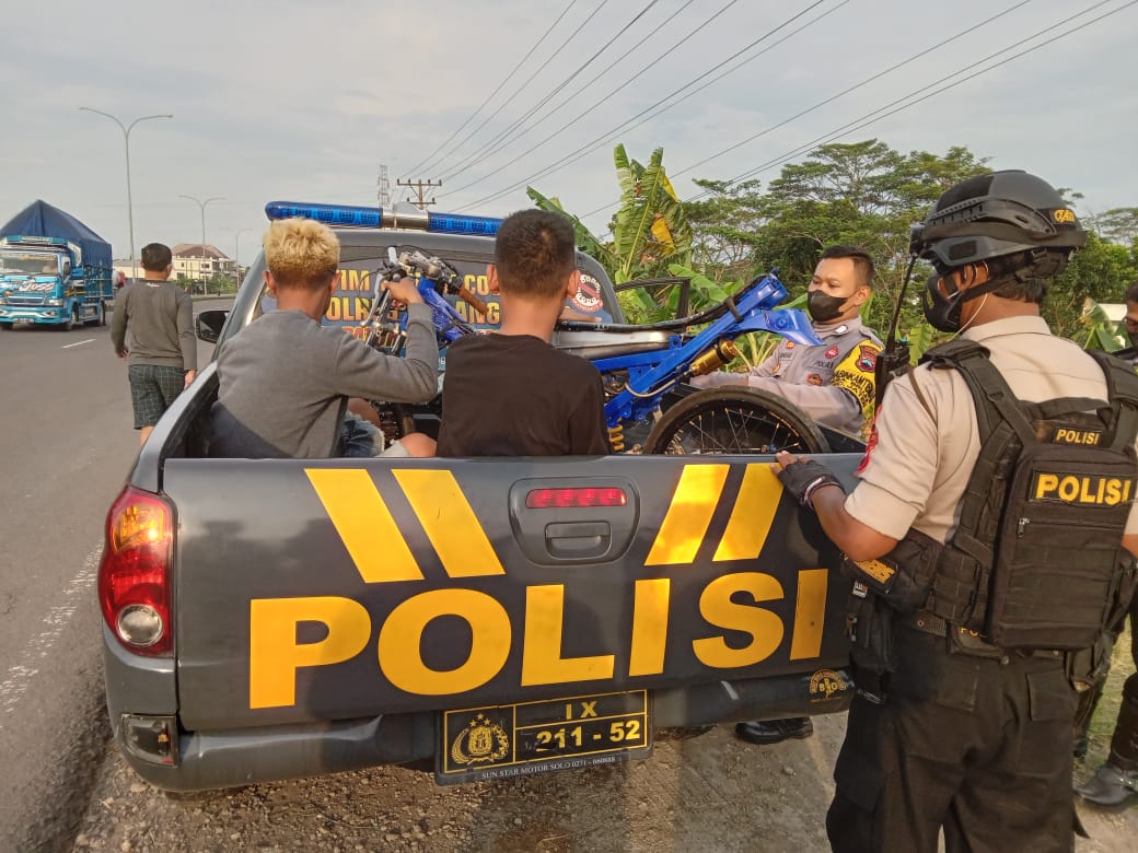 Kapolres Karanganyar AKBP Danang Kuswoyo melalui Kapolsek Jaten AKP Yuni Marsianto mengungkapkan, dari respon cepat kita atas laporan masyarakat berhasil mengamankan motor dengan modifikasi balap serta kedua pemuda juga ikut diamankan di Polsek Jaten.