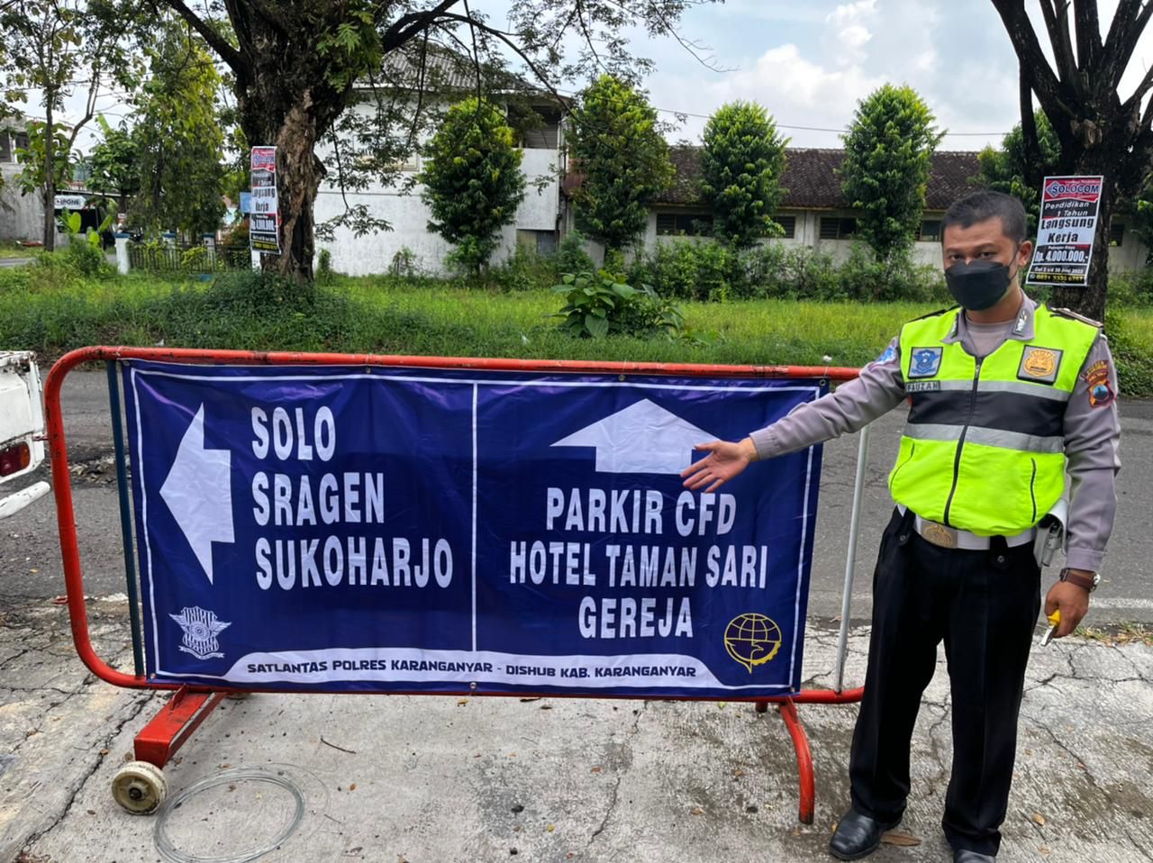 Selain dengan MMT maupun papan petunjuk dan imbauan, Satlantas Polres Karanganyar juga akan menerjunkan personilnya untuk melaksanakan rekayasa lalu lintas.