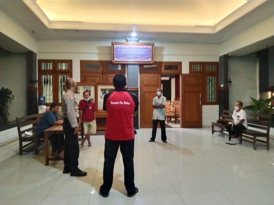 Aipda Dwi juga melakukan kordinasi dengan pihak panitia gereja untuk lebih tingkatkan kewaspadaan menjelang pelaksanaan ibadah maupun pada saat pelaksanaan ibadah esok harinya, selain itu juga dilakukan pengecekan dari beberapa ruangan yang ada di gereja untuk memastikan tidak ada benda yang mencurigakan.