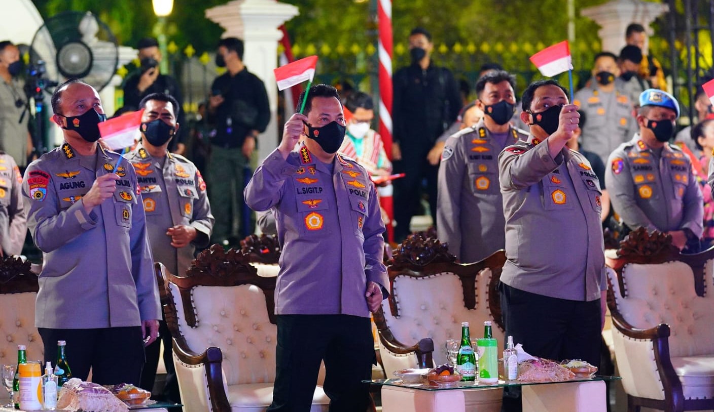 Yogyakarta – Kapolri Jenderal Listyo Sigit Prabowo resmi menutup kegiatan festival musik jalanan dalam rangka memperingati Hari Ulang Tahun (HUT) Bhayangkara ke-76 di museum Benteng Vrederburgh, Daerah Istimewa Yogyakarta (DIY), Kamis (26/5/2022) malam.