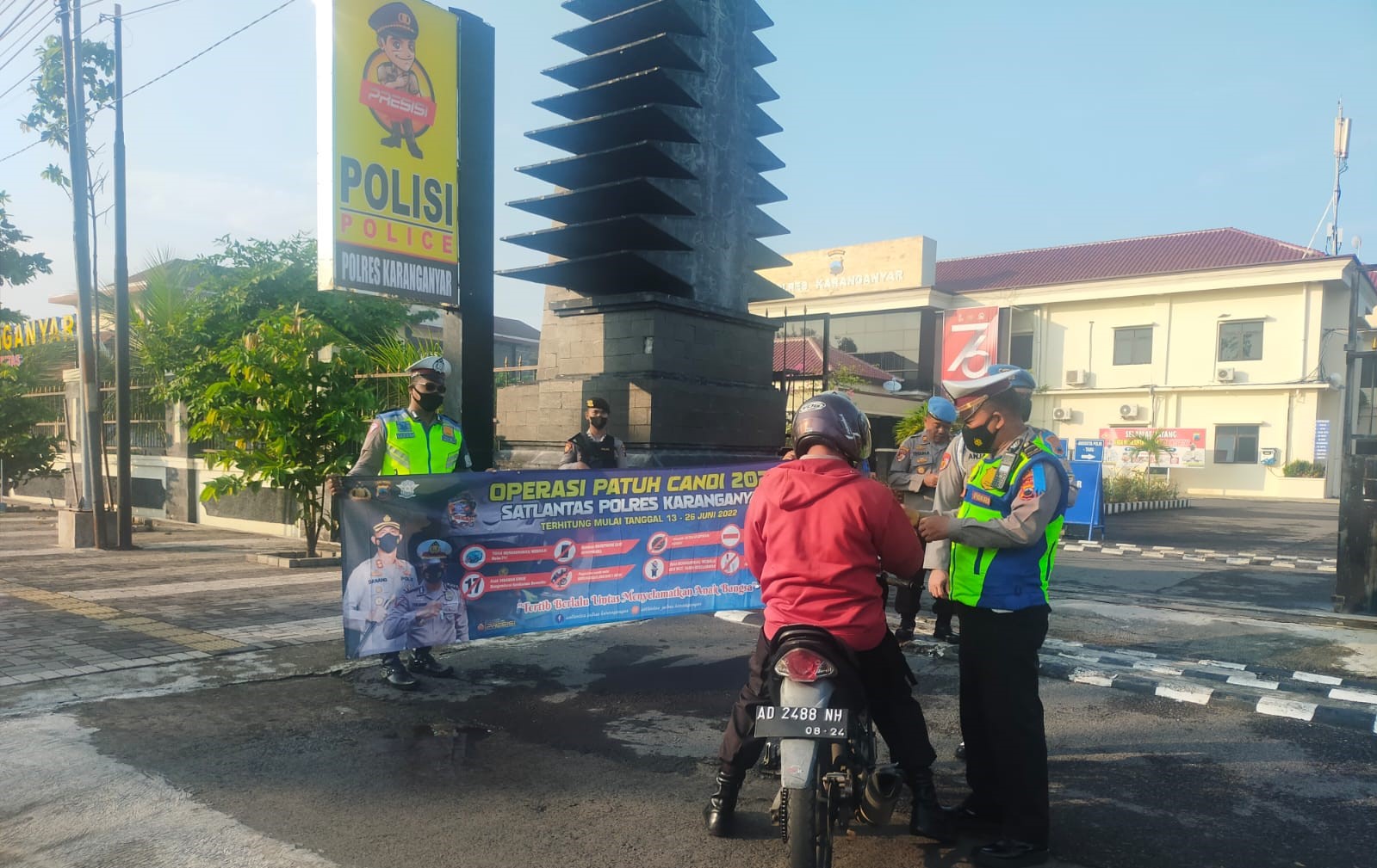 KARANGANYAR – Operasi Patuh Candi 2022 yang digelar jajaran Kepolisian menyasar kepada seluruh elemen masyarakat. Tidak terkecuali aparat Kepolisian pun harus mau dan wajib mematuhi segala bentuk peraturan, termasuk peraturan berlalu lintas.