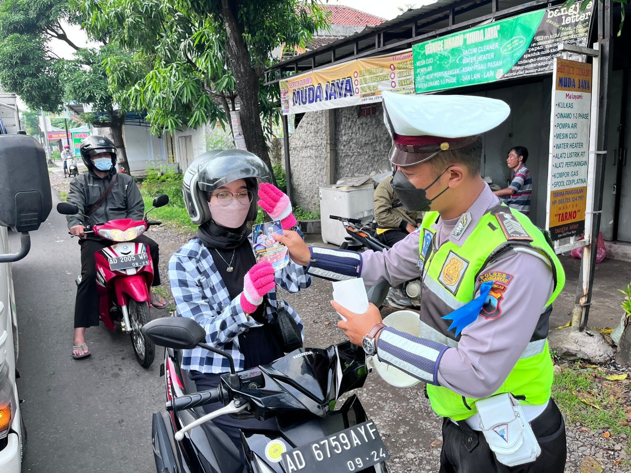 Polres Karanganyar – Dalam rangka Ops Patuh Candi tahun 2022, Satlantas Polres Karanganyar melaksanakan sosialisasi kepada masyarakat terkait hoaks pemberitaan di media bahwa akan dilakukan penilangan bagi pengendara yang memakai sandal jepit saat berkendara. Sabtu (18/6).