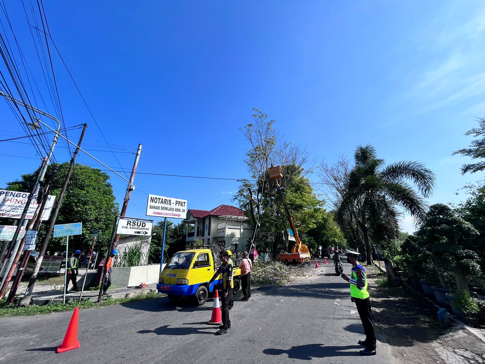 “ Apabila terjadi pohon tumbang yang mengarah ke jalan raya menimbulkan bahaya dan menimbulkan kemacetan arus lalu lintas bahkan bisa menimbulkan korban jiwa “ ungkap Kasat Lantas Polres Karanganyar AKP Yuliyanto
