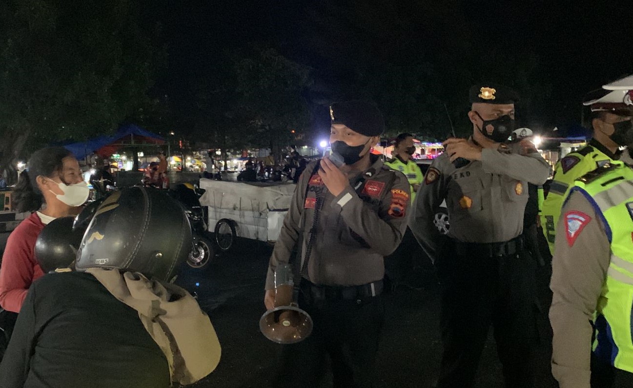 Tak ingin angka positif Covid-19 di wilayahnya kembali naik, Polres Karanganyar kerahkan peleton siaga yang dipimpin perwira pengawas AKP Murtiyoko untuk melakukan patroli yang difokuskan untuk woro-woro penerapan protokol kesehatan bagi warga Karanganyar yang beraktifitas diluar ruangan.
