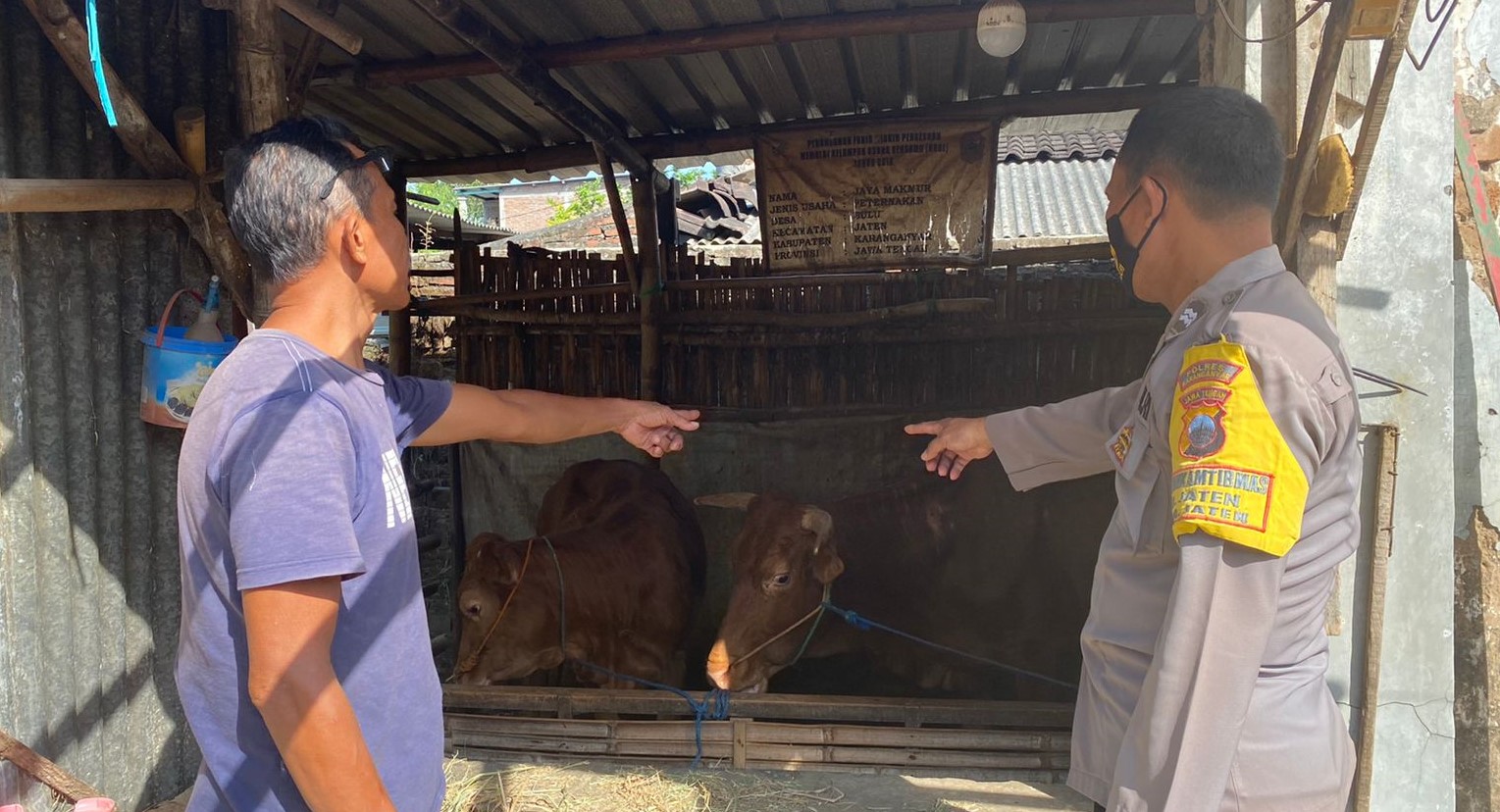 Senin (27/7) pagi anggota Unit Binmas Polsek Jaten Aiptu Sunarto dan Bripka Joko. S melaksanakan sambang kamtibmas di kandang ternak milik salah satu warga di wilayah Kecamatan Jaten, Karanganyar.
