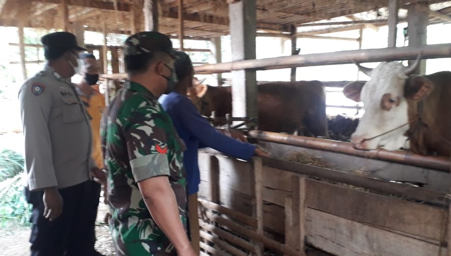 “Bhabinkamtibmas bersama Babinsa mendampingi tim dari Dispertan PP Kabupaten Karanganyar untuk memantau kesehatan ternak yang terjangkit PMK.” ungkap Kasat Binmas.