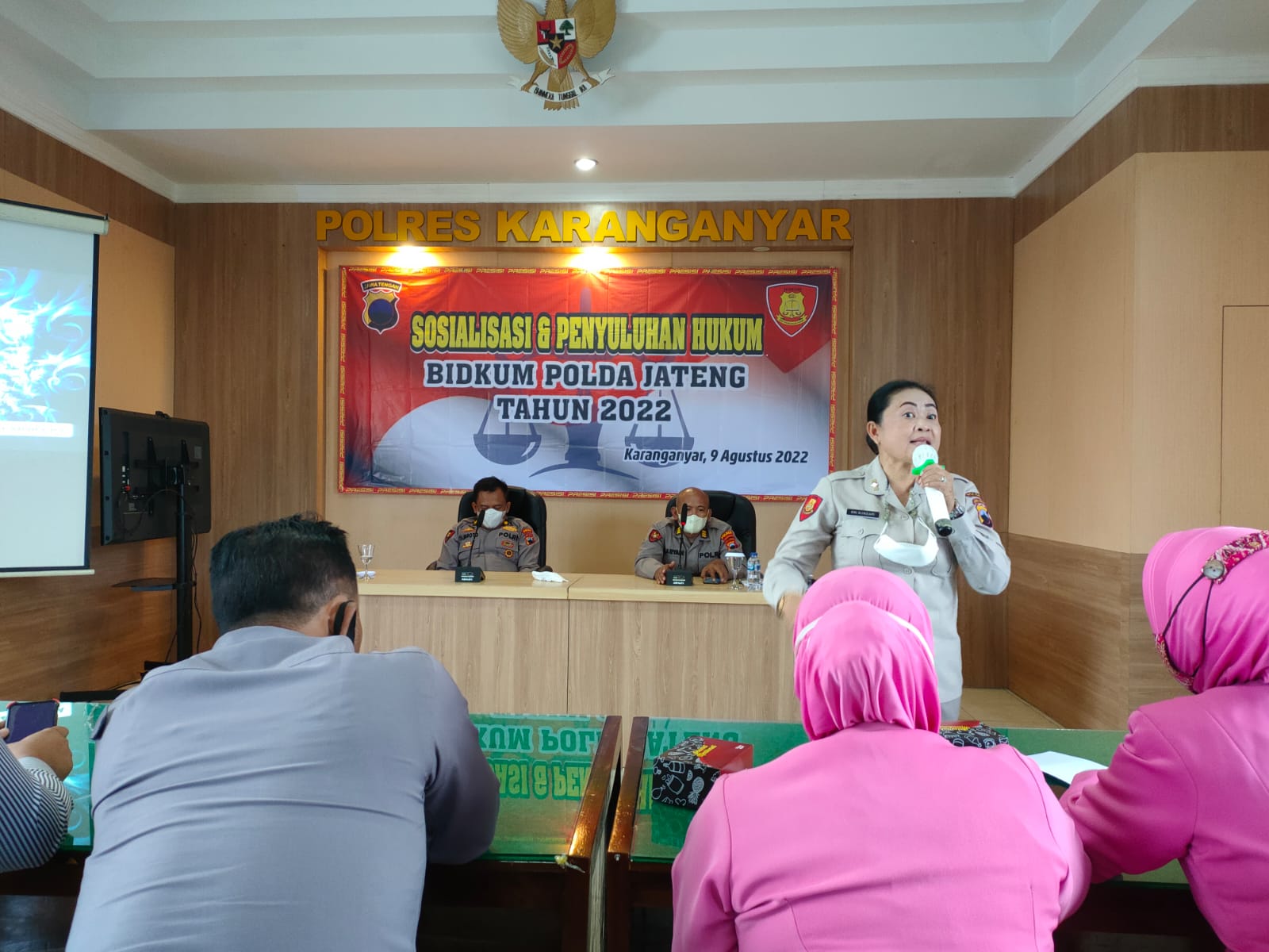 Polres Karanganyar — Bidang Hukum (Bidkum) Polda Jawa Tengah menyosialisasikan perihal kekerasan dalam rumah tangga (KDRT), penyalahgunaan Narkoba dan restorative justice ke jajaran Polres Karanganyar.