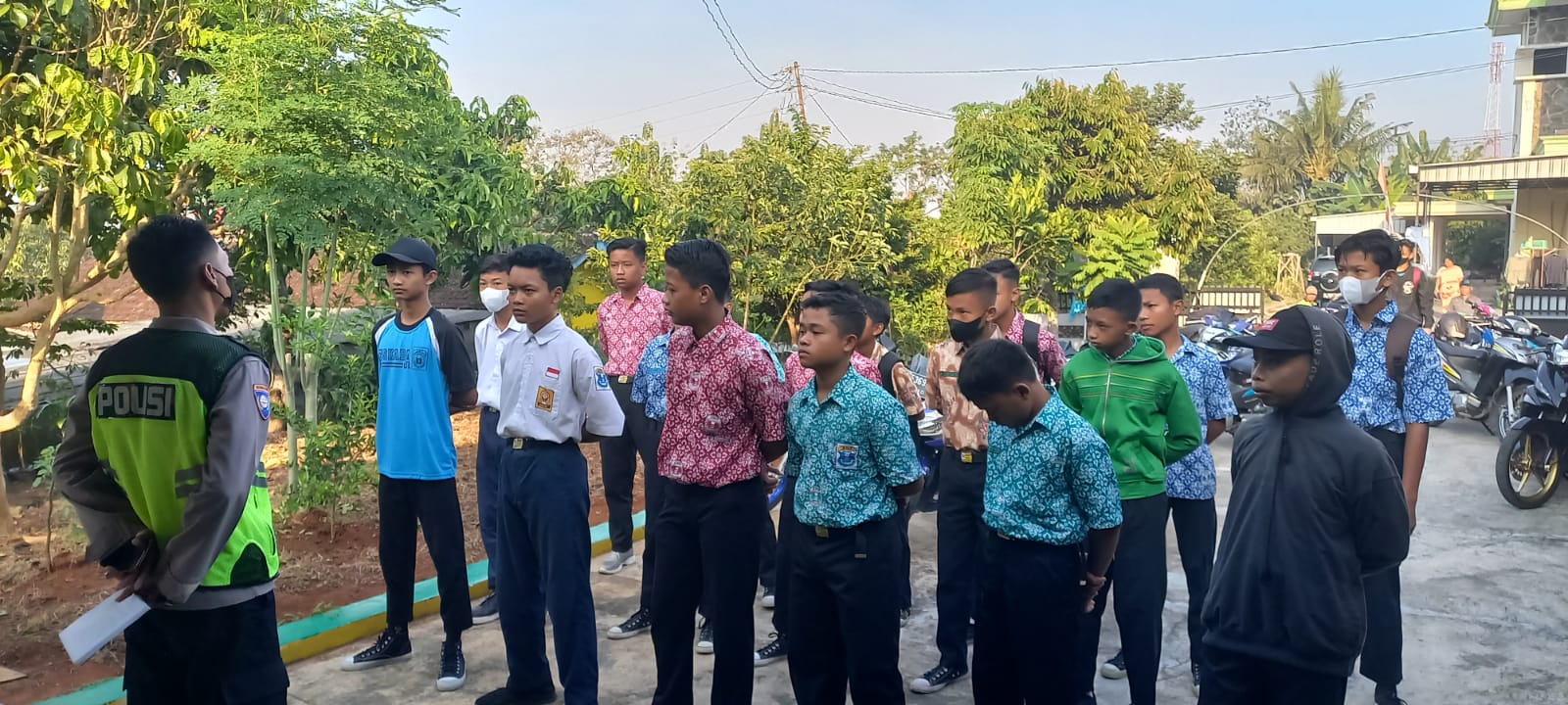 Polres Karanganyar – Babinkamtibmas Desa Bangsri Polsek Karangpandan Bripka Sunaryo, melakukan pembinaan tentang tata tertib berlalu lintas terhadap siswa SMP N 2 Karangpandan. Kamis (25/8/22) pagi.