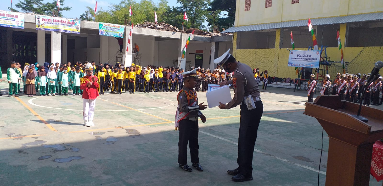 Kegiatan tersebut dilakukan bersama Pocil (Polisi Cilik) dari Sekolah Dasar yang ada di Kabupaten karanganyar , diantaranya Pocil SD Al Muhlisin, SD Alam Pintar, SDN 2 Tegalgede, SDN 2 Lalung , SDN 2 Kebak Jumantono.