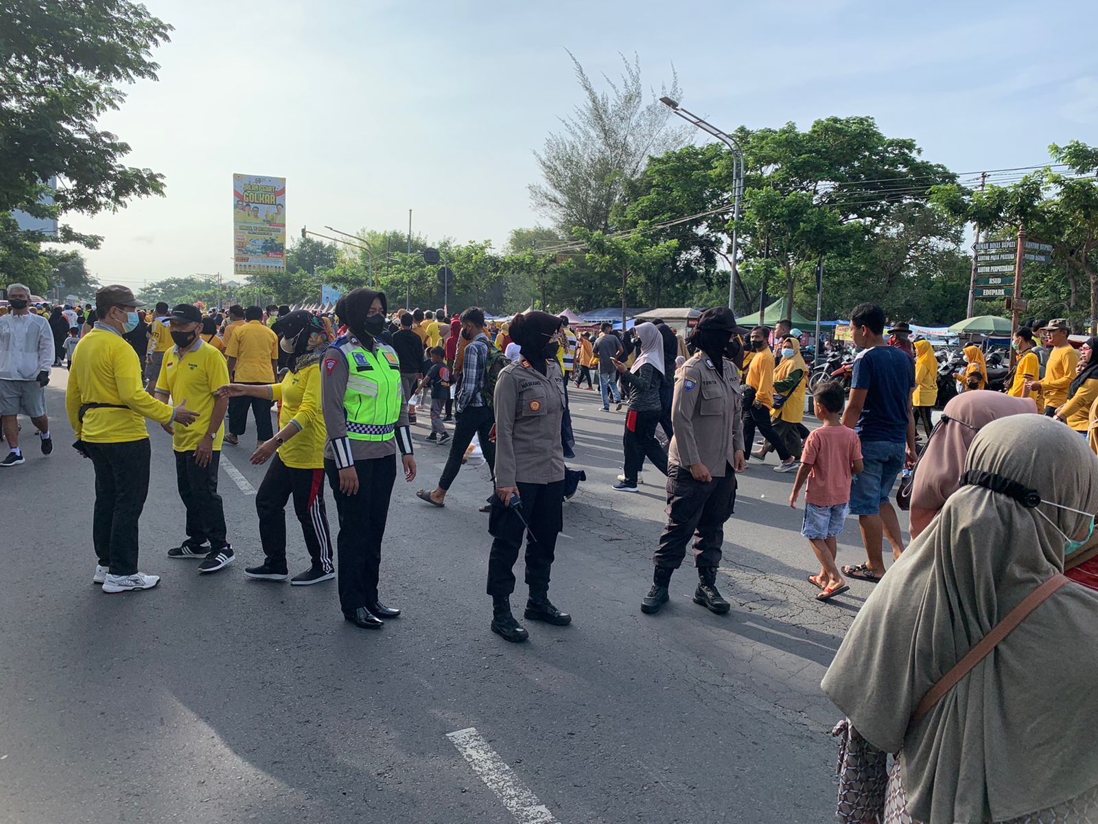 Selain itu, nampak 5 anggota Polwan, dipimpin Kapolsek Karanganyar, AKP Nawangsih melaksanakan patroli dialogis dengan peserta jalan sehat.
