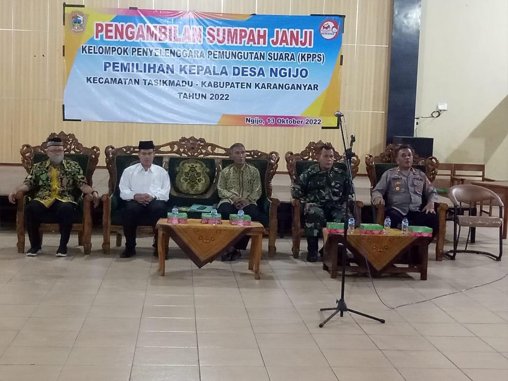 Kapolsek Tasikmadu Hadiri Kegiatan Pengambilan Sumpah KPPS Pilakdes Desa Ngijo