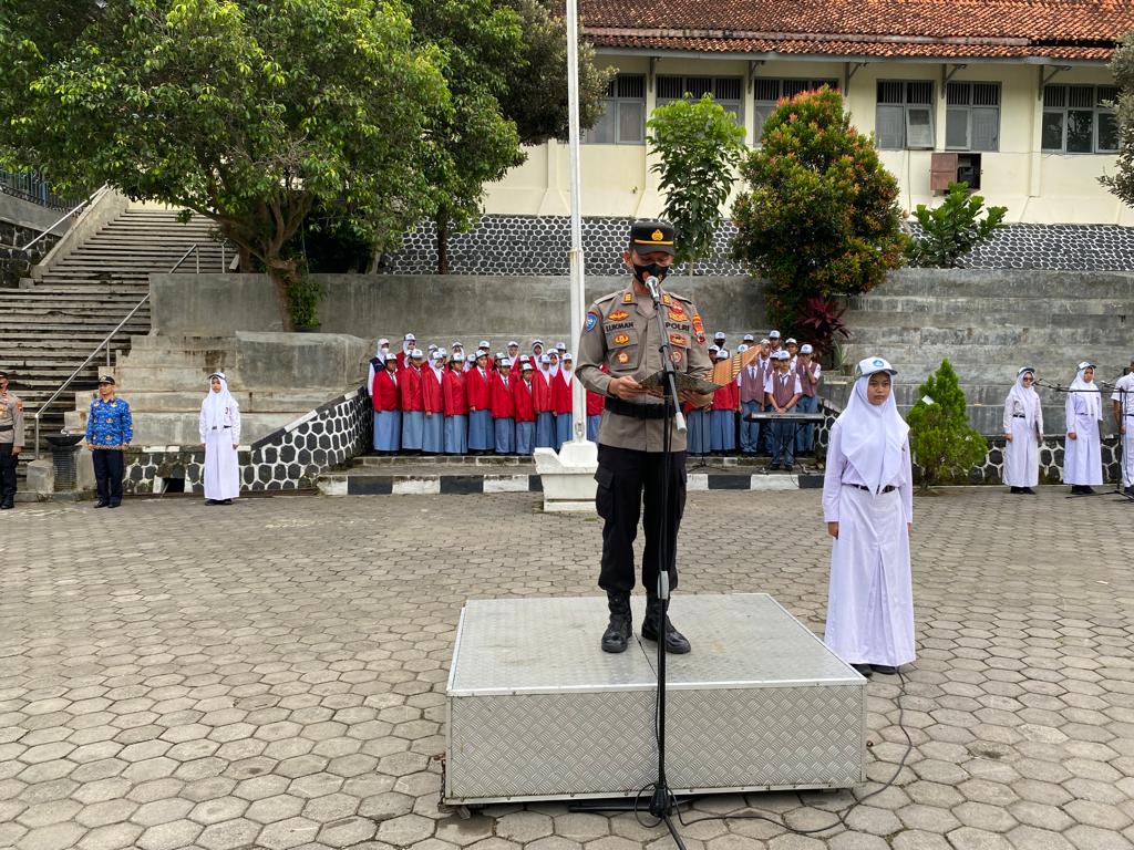 Polres Karanganyar – Kasat Binmas Polres Karanganyar AKP Lukman Tri Nof berikan pembinaan kepada siswa saat menjadi Inspektur Upacara di SMA N 1 Karanganyar, pada senin (17/10) pagi.
