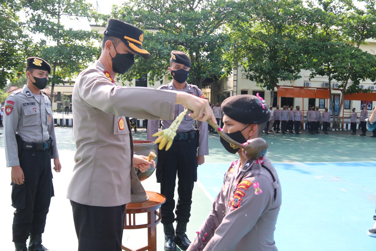 Polres Karanganyar – Sebanyak 10 Bintara Remaja angkatan 47 Tahun 2022 Sat Samapta Polres Karanganyar mengikuti Upacara Tradisi Pembaretan.