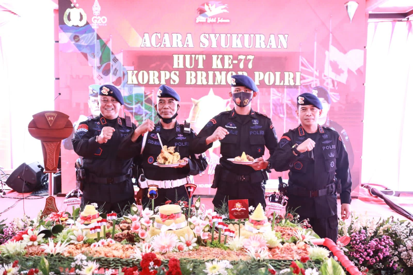SEMARANG – HUT Korps Brimob Polri Ke-77 dirayakan dalam bentuk tasyakuran oleh Satbrimob Polda Jateng, bertempat di Mako Satbrimobda di Srondol, Kota Semarang, Senin (14/11).