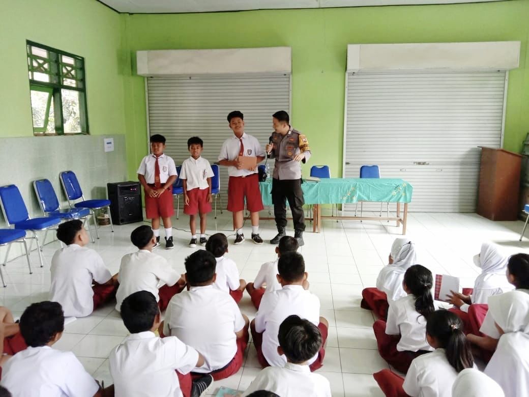 Dalam kesempatan itu, Bripka Iskhaq menyampaikan tentang wawasan kebangsaan, pencegahan kenakalan anak, dan aturan berlalulintas yang benar bagi siswa.