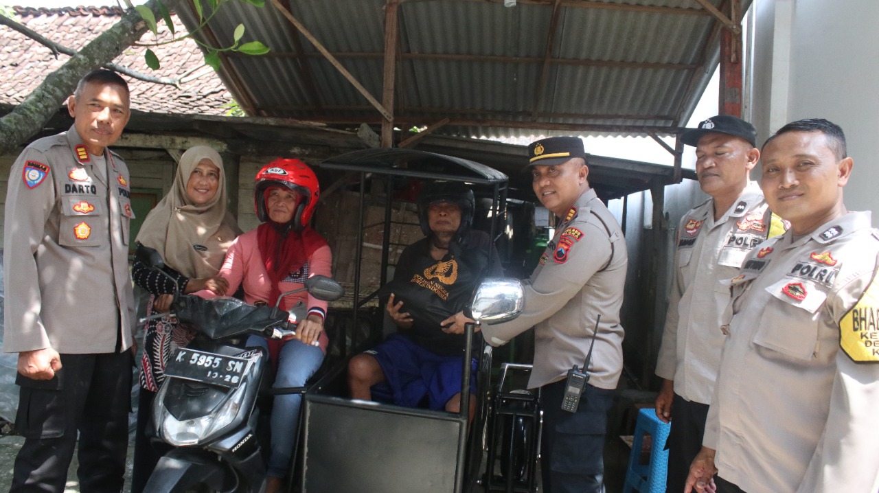 Selasa, (24/01/2023) Kapolres Blora yang diwakili Oleh Kasat Binmas AKP Sudarto bersama Kapolsek Blora AKP Yuliyanto,SH menyerahkan bantuan sosial berupa sarana roda tiga serta paket sembako untuk pak Supardi dan ibu Juwarti.