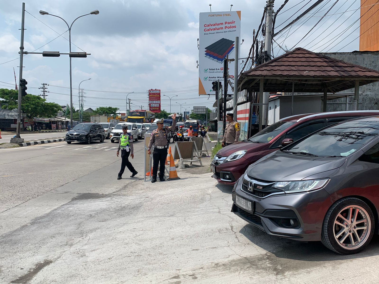 Antisipasi One Way Arus Balik Tol Fungsional Jogja – Solo, Pos Pam Exit Tol Ngasem Melaksanakan Pengaturan Lalu lintas di Simpang Empat Ngasem