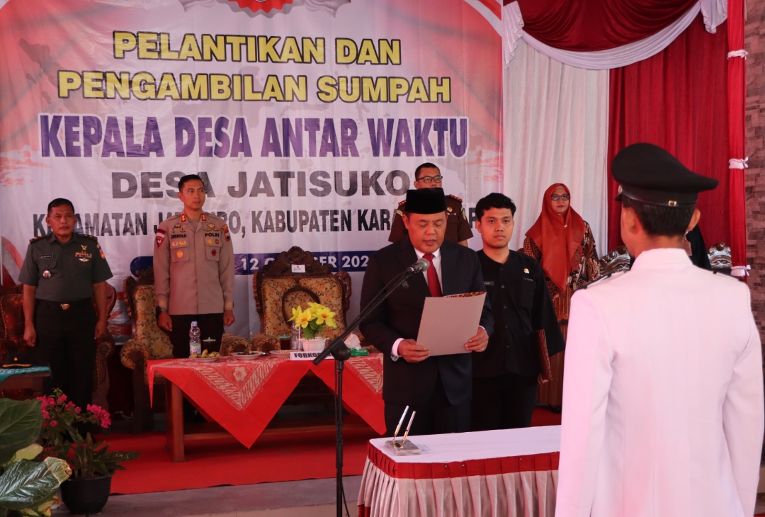 Pelantikan dan pengambilan sumpah jabatan Kepala Desa Antar Waktu Jatisuko yang terpilih dipimpin langsung oleh Bupati Karanganyar Juliyatmono di Kantor Desa Jatisuko, Kecamatan Karanganyar, Kabupaten Karanganyar.
