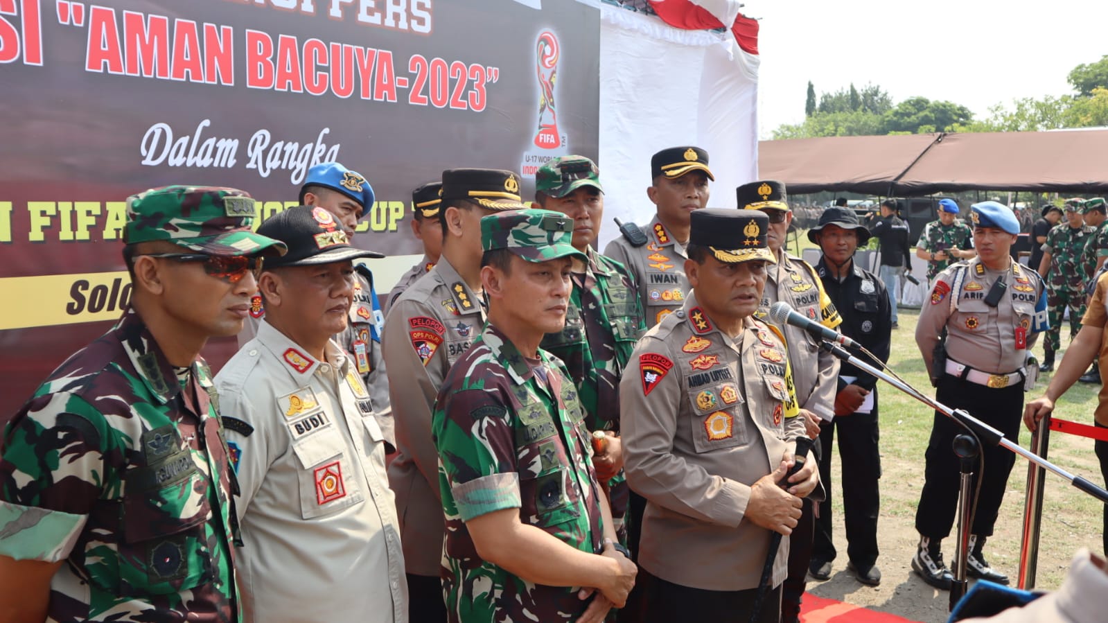 Irjen Ahmad Luthfi saat membacakan amanat Kapolri menyebutkan, pengamanan piala dunia FIFA U-17 merupakan kebanggaan bagi setiap personel Polri dan TNI yang terlibat serta membawa nama harum bangsa Indonesia di kancah Internasional