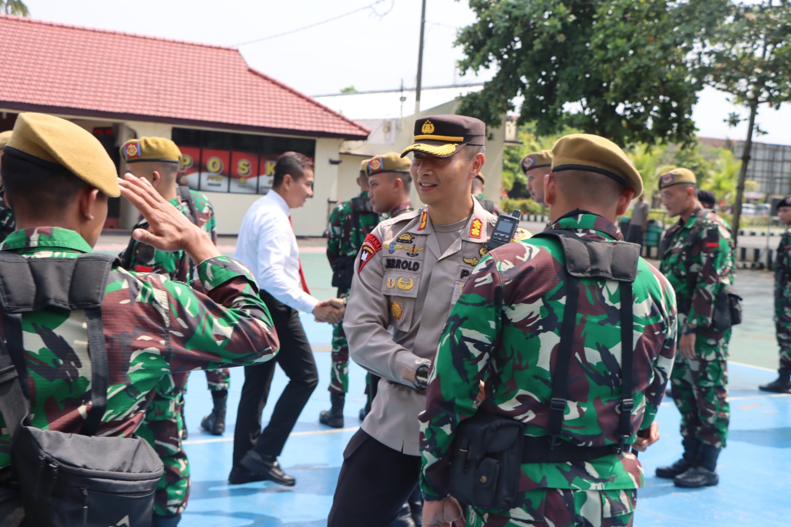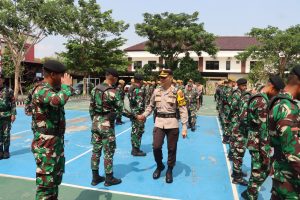 Polres Karanganyar – Tribratanews.jateng.polri.go.id | Kapolres Karanganyar AKBP Jerrold H.Y Kumontoy pimpin apel penyambutan BKO dari TNI dalam rangka Pengamanan Ops Aman Bacuya 2023 Polres Karanganyar di Halaman Wirapratama Polres Karanganyar, Jum’at (10/11/23) pagi.