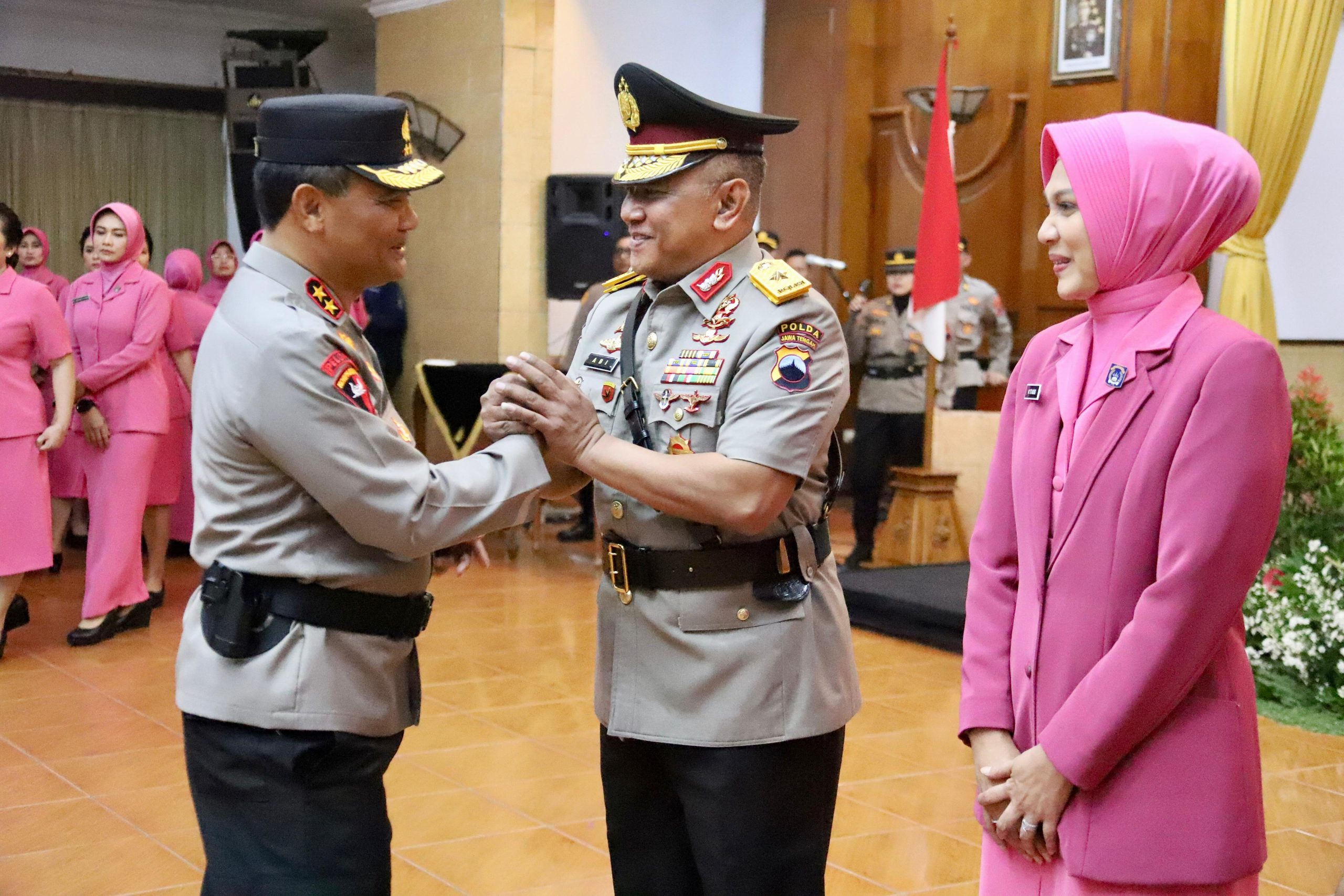 Polda Jateng – Kota Semarang | Kapolda Jateng Irjen Pol Ahmad Luthfi memimpin upacara sertijab Waka Polda Jateng, 3 PJU dan 9 Kapolres di lingkungan Polda Jateng. Kegiatan upacara sertijab di gelar di Gedung Borobudur Mapolda Jateng pada hari Selasa, (19/12/2023) pagi.