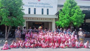 Polres Karanganyar – Tribratanews.jateng.polri.go.id | Sebanyak 90 anak siswa dari TK Al-Amin Karanganyar, mendatangi mako Polres Karanganyar, Jum’at (8/12/23) pagi.