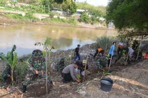 Tak hanya melaksanakan pembersihan sampah-sampah. Para personel Polres Karanganyar maupun Kodim 0727/Karanganyar juga melaksanakan penanaman pohon di Desa Daleman Ngringo, Jaten yang wilayah tersebut merupakan wilayah yang rawan akan banjir.