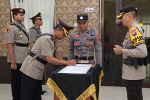 Karanganyar – Kapolres Karanganyar, AKBP Jerrold Hendra Yosef Kumontoy memimpin serah terima jabatan (sertijab) sejumlah perwira di Aula Wira Pratama I Mapolres Karanganyar, Minggu (4/2/2024).