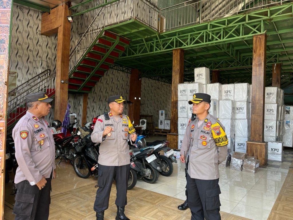 Karangaanyar – Guna memastikan keamanan Logistik Pemilu saat memasuki Masa Tenang Pemilu 2024, Wakapolres Karanganyar Kompol Mardiyanto melakukan pengecekan terhadap Gudang Logistik Pemilu di PPK. Minggu (11/2).