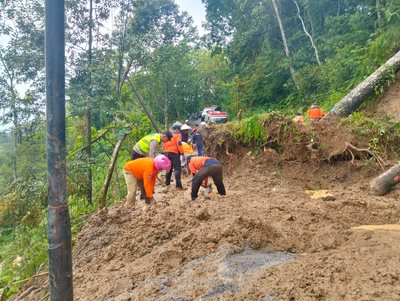 Melalui kerja sama lintas instansi dan peran aktif masyarakat, material longsor berhasil dievakuasi sehingga jalan kembali dapat dilalui.